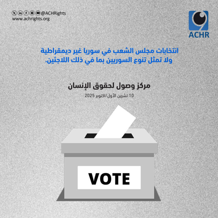 انتخابات مجلس الشعب في سوريا غير ديمقراطية ولا تمثل تنوع السوريين بما في ذلك اللاجئين